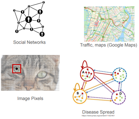 所谓"计算抽象概念",原文"Computation on abstract concepts",指的是我们可以利用图来处理复杂的事务。举例来讲,社交网络中的人际联系、交通系统中的路线连接、科学研究中的因果关系往往都是很复杂的,而其中的许多数据都可以归纳为实体间的相互作用和联系,也就是图。图是理解和操作这些关系的有力工具。图不仅能帮助我们理解和分析局部(即直接连接的实体间的)信息,而且还能帮助我们抽象这些信息。这意味着我们可以从特定的实例或局部情况中提取出通用模式或原则,通过对局部信息的抽象,图使我们能够从整体数据中提取出有用的全局信息,这可能涉及识别整个网络中的关键节点(比如社交网络中的意见领袖),发现群体结构(比如社区检测),或者理解整体结构如何影响个体行为和系统性能。