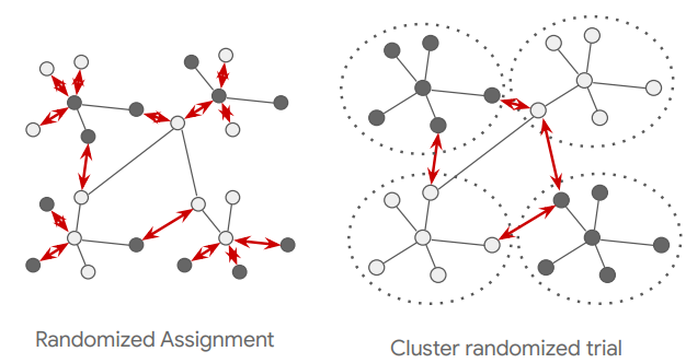 正如上图所示,如果我们将个体作为实验对象,那么实验对象之间会互相影响,其相互影响的数量达10+之多。为了解决此问题,我们以簇作为实验对象。如右图所示,在该样例中,其相互影响的数量仅为4。