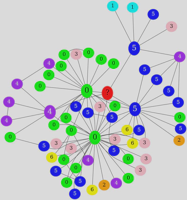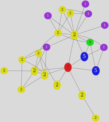 We set the **unlabeled node always to be “red” and have a mark as a ‘?’ label on the node. **