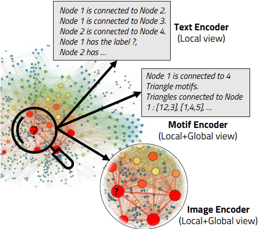 Abstract: Large language models (LLMs) are revolutionizing various fields by leveraging large text corpora for context-aware intelligence. Due to the context size, however, encoding an entire graph with LLMs is fundamentally limited. This paper explores how to better integrate graph data with LLMs and presents a novel approach using various encoding modalities (e.g., text, image, and motif) and approximation of global connectivity of a graph using different prompting methods to enhance LLMs’ effectiveness in handling complex graph structures. The study also introduces GraphTMI, a new benchmark for evaluating LLMs in graph structure analysis, focusing on factors such as homophily, motif presence, and graph difficulty. Key findings reveal that image modality, supported by advanced vision-language models like GPT-4V, is more effective than text in managing token limits while retaining critical information. The research also examines the influence of different factors on each encoding modality’s performance. This study highlights the current limitations and charts future directions for LLMs in graph understanding and reasoning tasks.