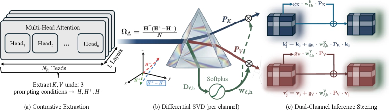 Prompt highlighting steers a large language model to prioritize user-specified text spans during generation. A key challenge is extracting steering directions that capture the difference between relevant and irrelevant contexts, rather than shared structural patterns common to both. We propose PRISM-Δ (Projection-based Relevance-Informed Steering Method), which decomposes the difference between positive and negative cross-covariance matrices to maximize discriminative energy while eliminating shared directions. Each attention head receives a continuous softplus importance weight, letting weak-but-useful heads contribute at reduced strength. The framework extends naturally to Value representations, capturing content-channel signal that Key-only methods leave unused. Across four benchmarks and five models, PRISM-Δ matches or exceeds the best existing method on 19 of 20 configurations, with relative gains up to +10.6%, while halving the fluency cost of steering. PRISM-Δ also scales to long-context retrieval, outperforming the best existing method by up to +4.8% relative gain. PRISM-Δ is compatible with FlashAttention and adds negligible memory overhead.