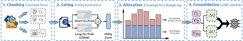 Long contexts challenge transformers as attention scores dilute across thousands of tokens and critical information is often lost in the middle. We reframe test-time adaptation as a budget-constrained memory consolidation problem and propose Gdwm (Gated Differentiable Working Memory), which introduces a write controller that estimates Contextual Utility, an information-theoretic measure of long-range contextual dependence, to allocate gradient steps efficiently. Experiments on ZeroSCROLLS and LongBench v2 show Gdwm achieves comparable or superior performance with 4x fewer gradient steps than uniform baselines, establishing a new efficiency-performance Pareto frontier for test-time adaptation.